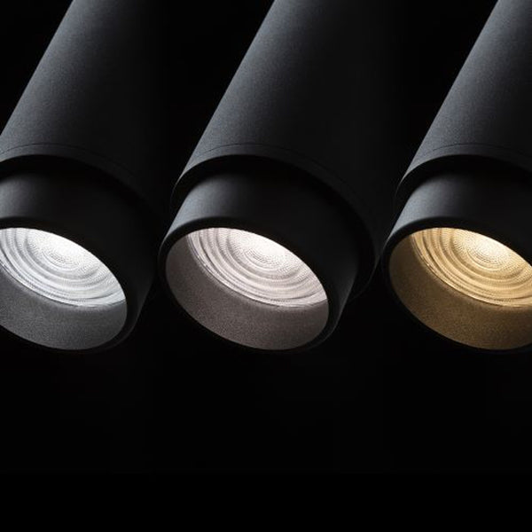Spot cylindrique pour rails triphasés. Adapté aux ampoules à culot GU10. Le système à ressort de la douille permet d’accepter des ampoules de différentes longueurs.