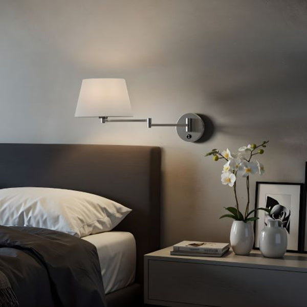 Base murale à deux bras réglable sur l’axe horizontal. À combiner avec des abat-jour avec fixation pour douille E27. Compatible avec les abat-jour : AMBITUS 24/15, RON 15/20.