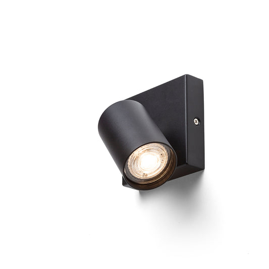 Applique murale laquée avec tête inclinable pour ampoules à culot GU10. Le luminaire dispose d’un port USB intégré dans la base, idéal pour recharger un téléphone, par exemple.