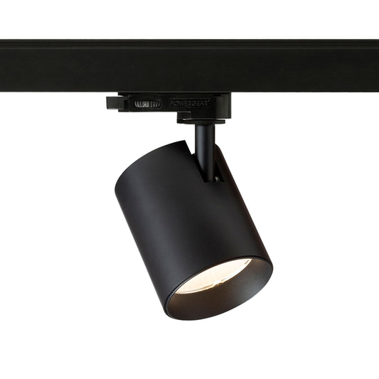 Luminaire tubulaire dimmable pour rail monophasé, avec réglage du cône lumineux par système de zoom de 10 à 60°. Un interrupteur intégré permet de régler la température de couleur : 3000 K, 4000 K ou 5000 K. Intensité réglable via variateur TRIAC.