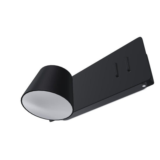 Applique murale LED avec spot orientable et éclairage indirect unidirectionnel. Le projecteur et l’éclairage indirect sont commandés séparément via deux interrupteurs situés sur la base.