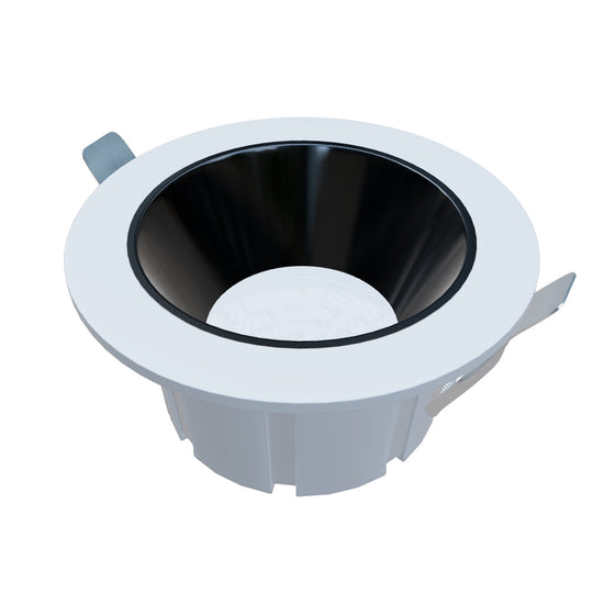 Spot LED encastrable avec réflecteur décoratif en finition chrome noir.