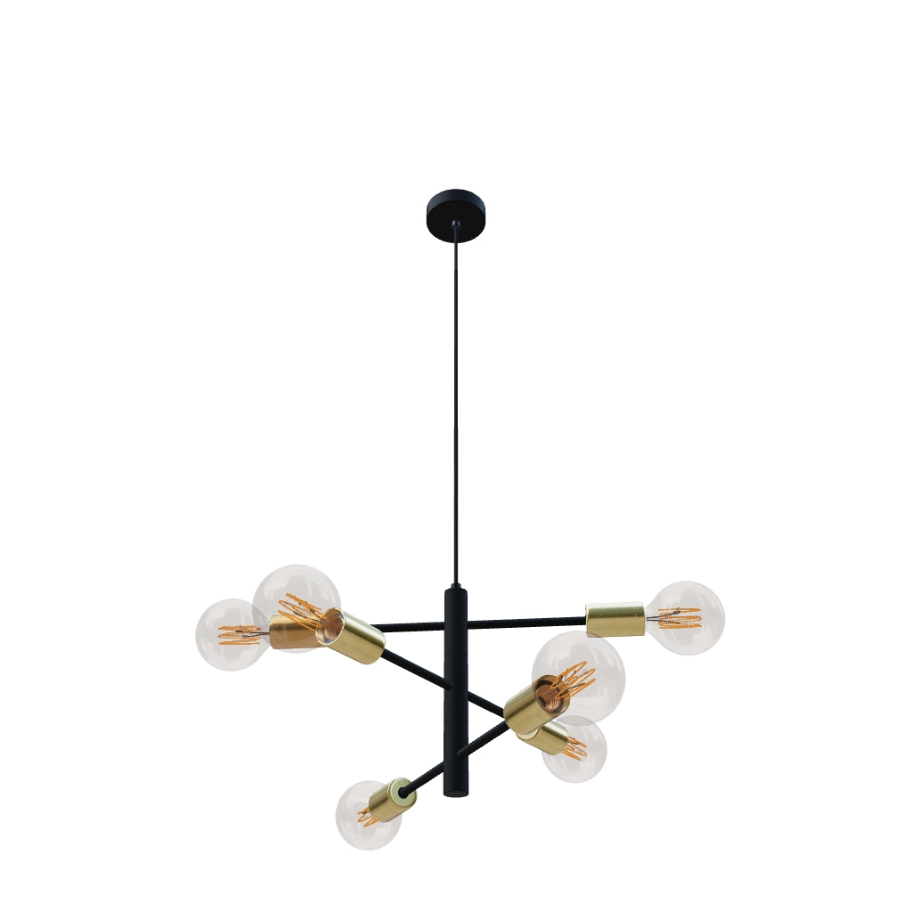 Suspension design avec cache-douilles décoratifs en laiton. Le luminaire peut être façonné en ajustant les bras. Convient aux sources LED avec culot E27.