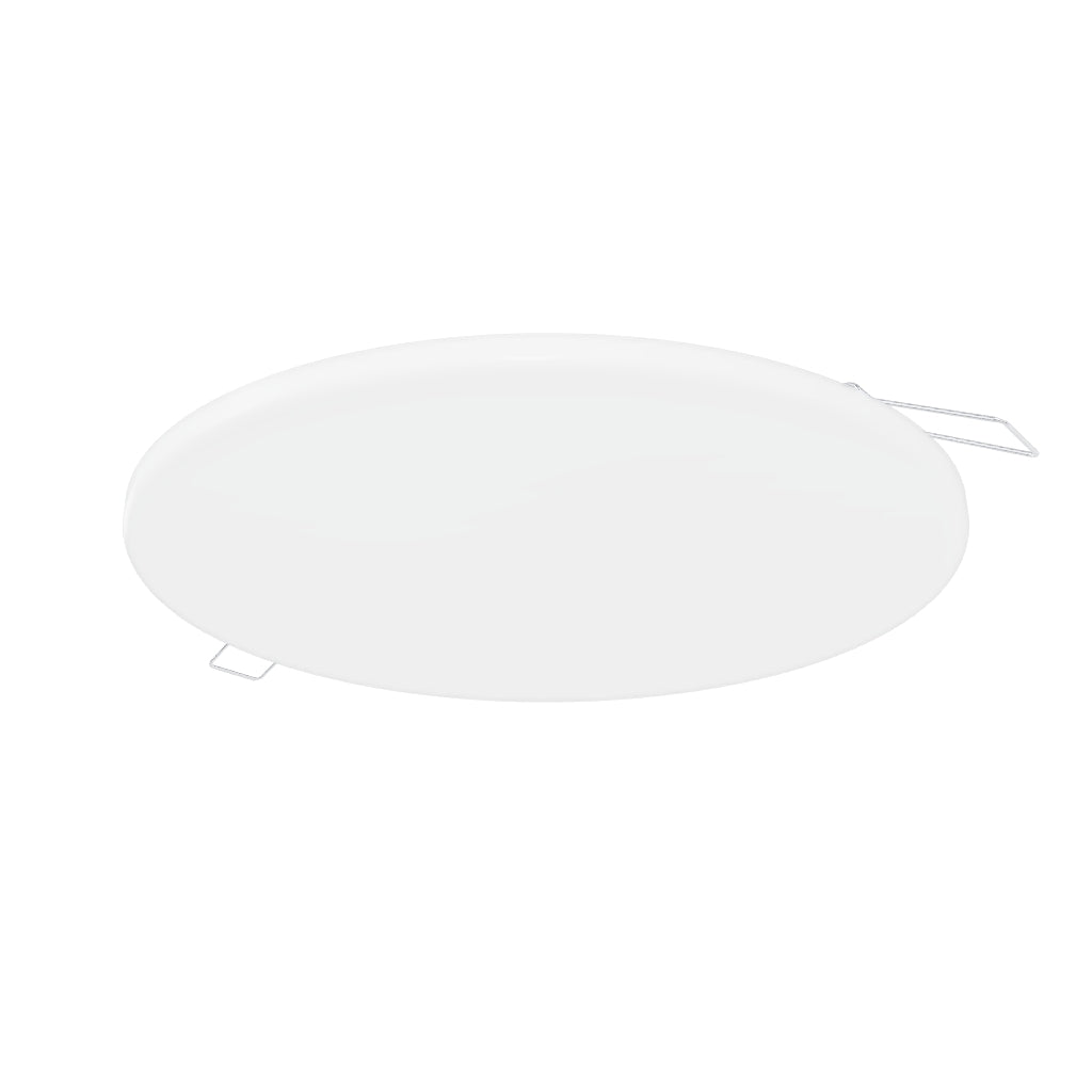Luminaire encastrable sans cadre avec diffuseur en acrylique laiteux, légèrement en relief par rapport au plafond. Convient aux environnements humides.