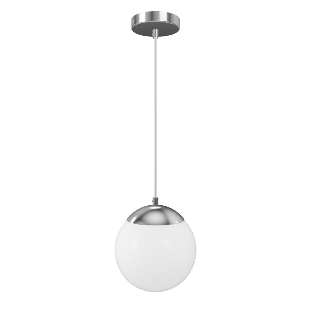 Suspension avec verre opale et accessoires chromés. Convient aux environnements humides.