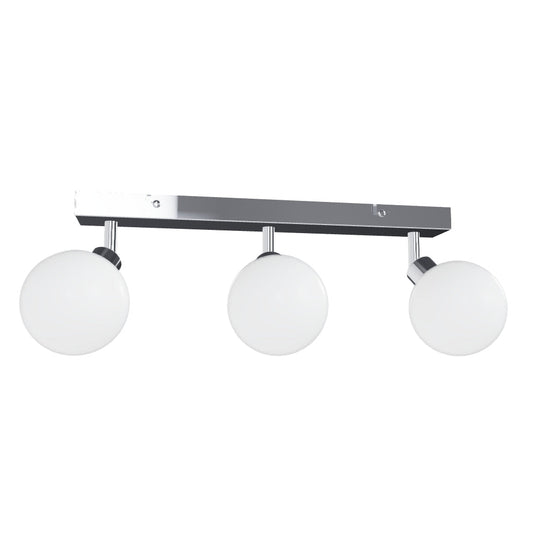 Luminaire mural ou plafonnier avec globes en verre opale sur base chromée. Convient aux environnements humides.