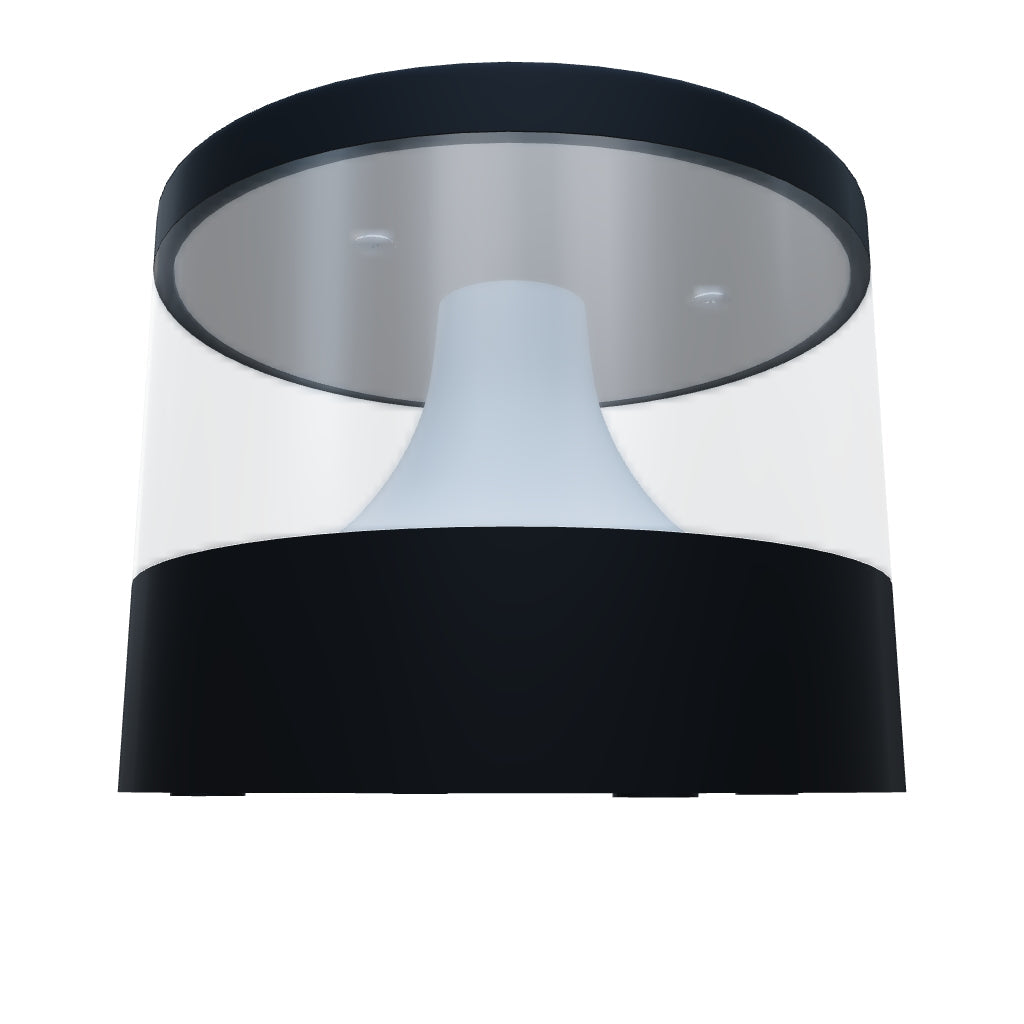 Luminaire LED d’extérieur avec diffusion douce et homogène de la lumière sur les côtés.