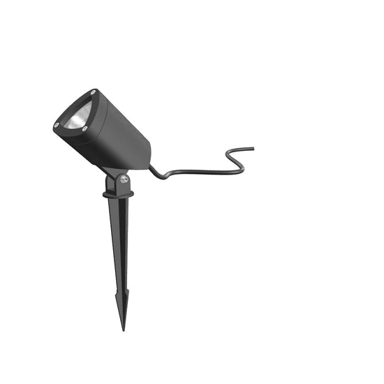 Réflecteur LED d’extérieur sur piquet, livré avec câble nu.