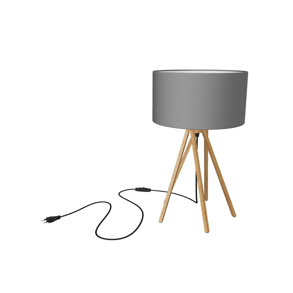 Lampe de table avec base en bambou et abat-jour en textile. Livrée en pièces détachées, montage requis.
