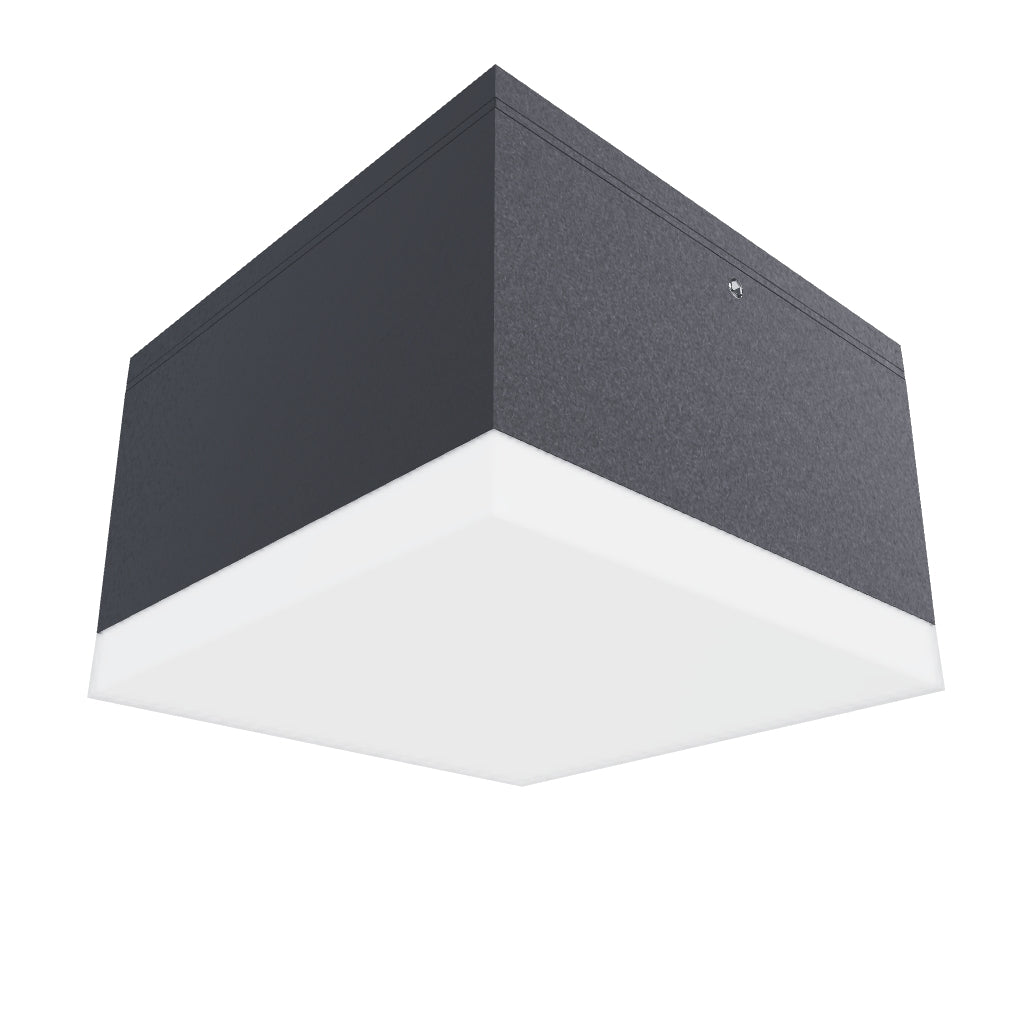 Plafonnier LED carré d’extérieur avec diffuseur satiné.