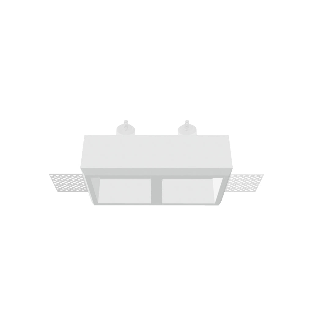 Spot encastrable en plâtre avec deux ouvertures carrées, sans cadre. Surface peignable avec des peintures murales intérieures. Montage exclusivement dans des plafonds en plaques de plâtre.