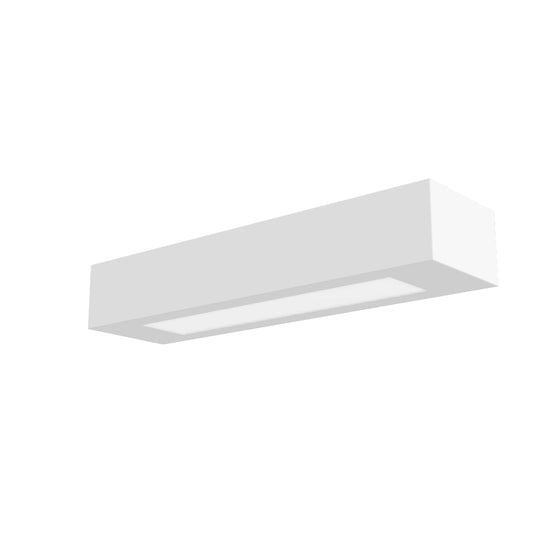 Applique murale en plâtre avec éclairage UP/DOWN. La partie inférieure du luminaire est recouverte de verre satiné. La surface du luminaire peut être peinte avec de la peinture intérieure.