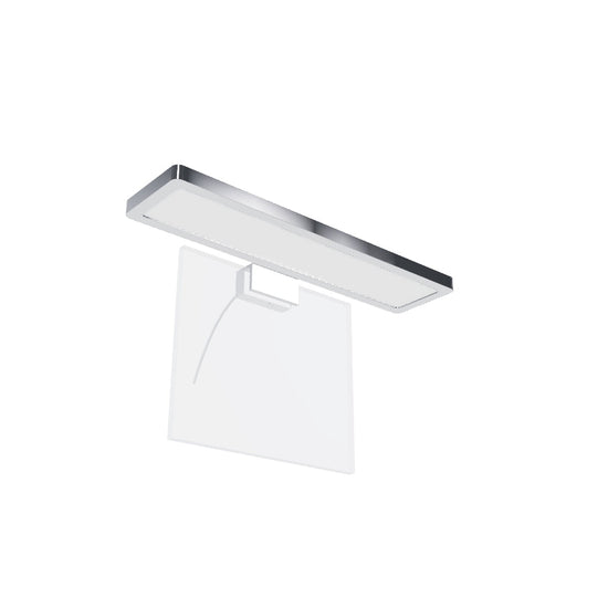 Luminaire LED rectangulaire en métal finition chromée avec éclairage UP/DOWN, conçu pour montage sur armoires ou étagères de salle de bains.
