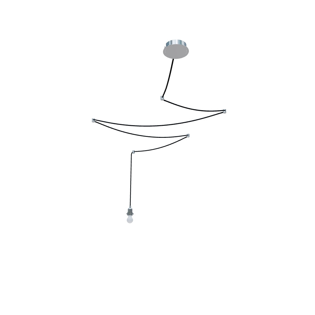 Kit modulable adapté à une utilisation seule avec une ampoule décorative ou pour la suspension d’un abat-jour léger. Le kit peut être fixé au plafond ou au mur à l’aide d’attaches positionnées sur un câble textile noir. Le kit contient 4 attaches en plastique noir ou 4 attaches métalliques chromées. Les attaches peuvent également être commandées séparément. Abat-jour compatibles : ARISTA, ASPRO, DOUBLE, JAKARANDA, RON.